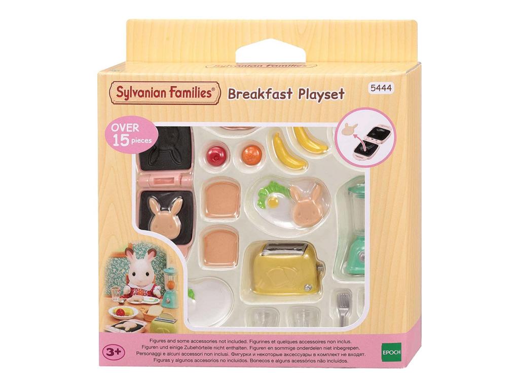 Sylvanian reggeli játékkészlet reggeli és főzőedényeket tartalmaz. Tartalmaz tükörtojást, kenyeret és gyümölcsöt. A kenyeret a pop-up kenyérpirítóba lehet tenni. A kenyeret a kar mozgatásával lehet megpirítani.