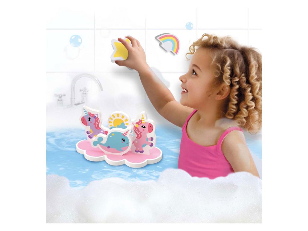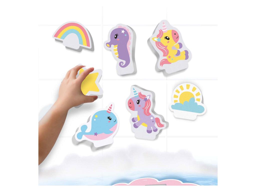 Teremtsd meg saját varázslatos játékvilágod a fürdőkádban a fürdőszoba sziget egyszarvúval! Ezekkel az egyszarvú fürdőfigurákkal szabadjára engedheted fantáziádat, és a fürdés igazi ünneppé válik. A különböző figurák behelyezhetők a szigetbe, úszhatnak a vízen vagy a fürdőszoba csempéjére ragaszthatók. Így sok lehetőség nyílik saját történet kitalálására és rengeteg szórakozásra fürdés közben. A készlet 9 habszivacs darabot tartalmaz: 8 figurát és 1 úszó szigetet. Tökéletes azoknak a gyerekeknek, akik szeretik az egyszarvúakat és a vízi szórakozást!