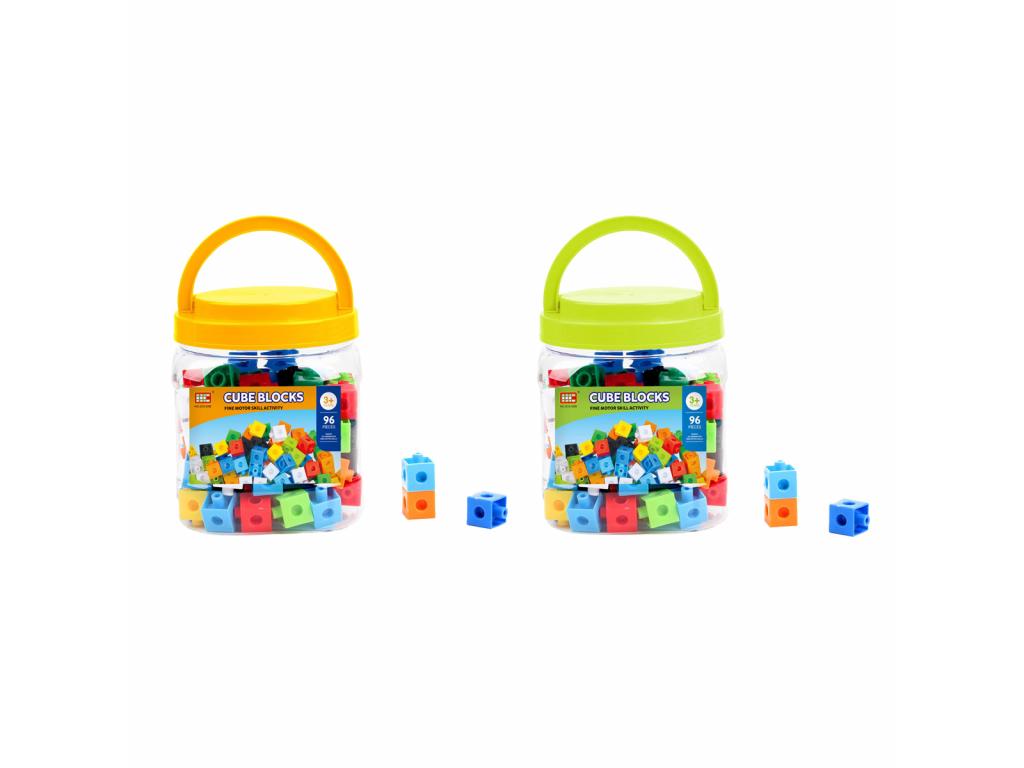 A Cube Blocks színes kocka építőelemek dobozban, 96 darabos. leírása: