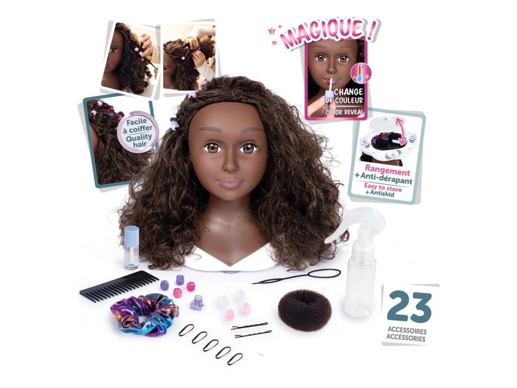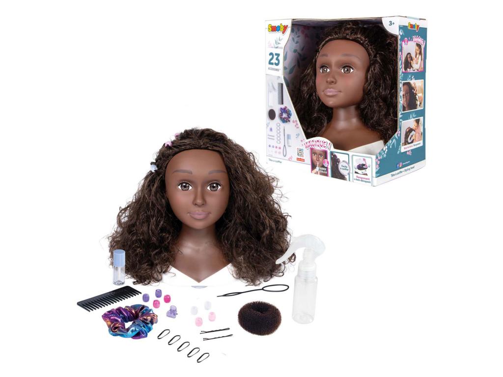 A Smoby fésülhető afro babafej, kiegészítőkkel, 23 darabos leírása: