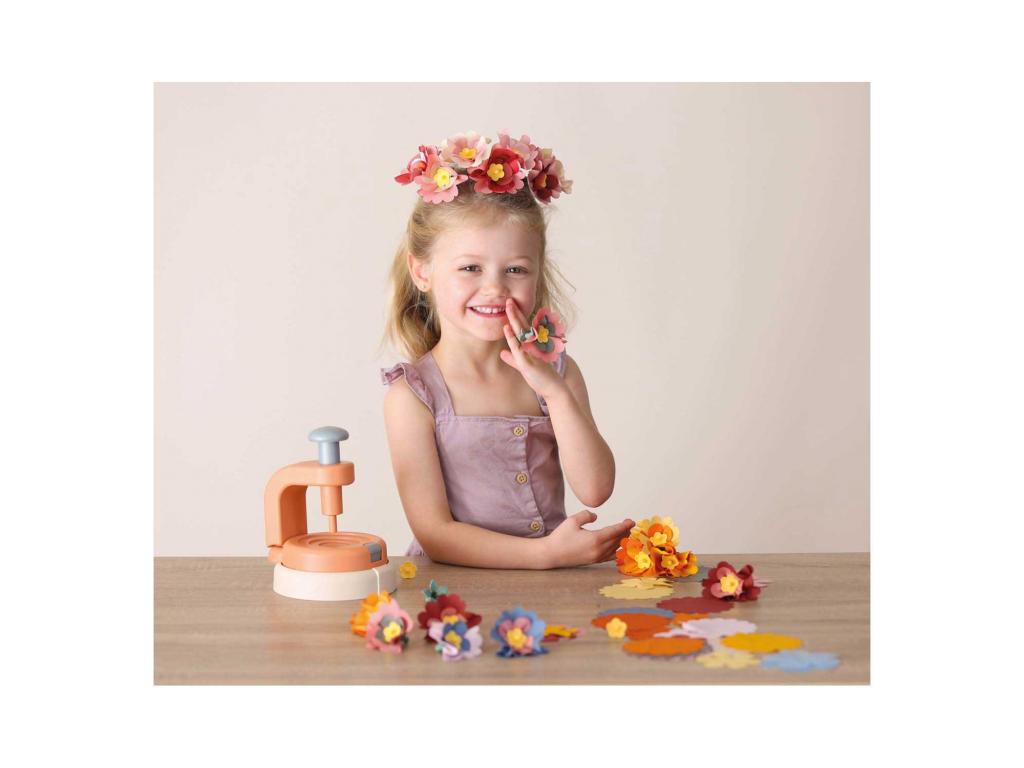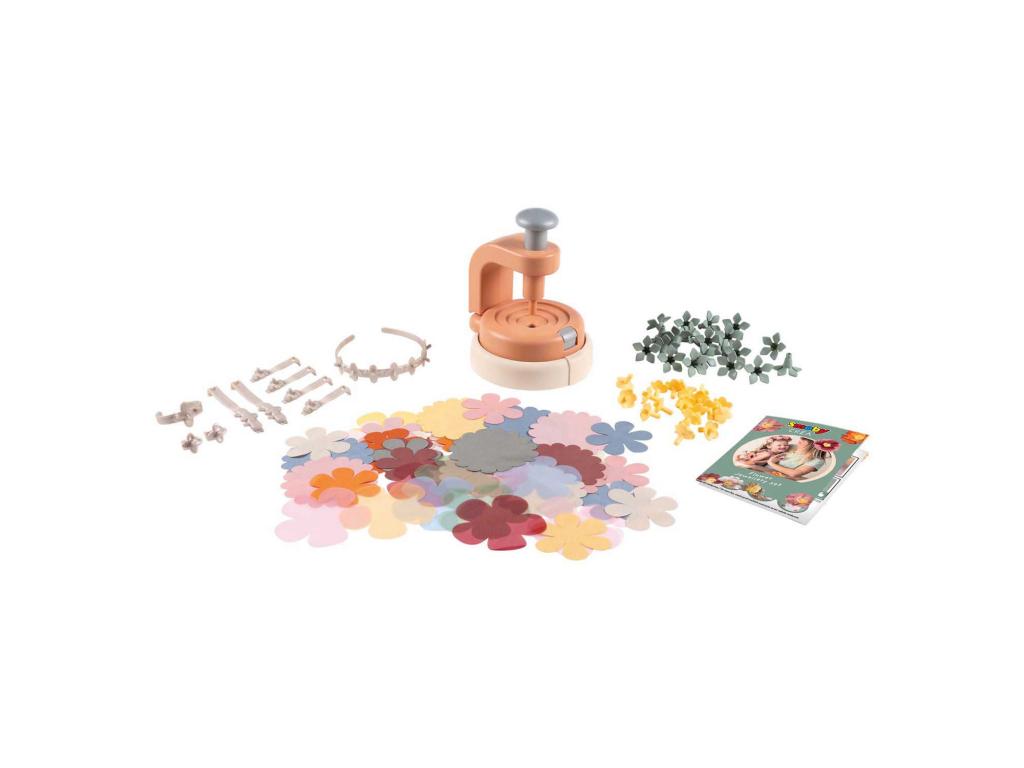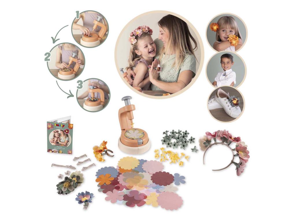 Smoby virágdísz-készítő kézműves készlet 50 szirommal, 20 szárral és 20 bélyegzővel. Virágpréssel a díszek elkészítéséhez. 3 éves kortól alkalmas.