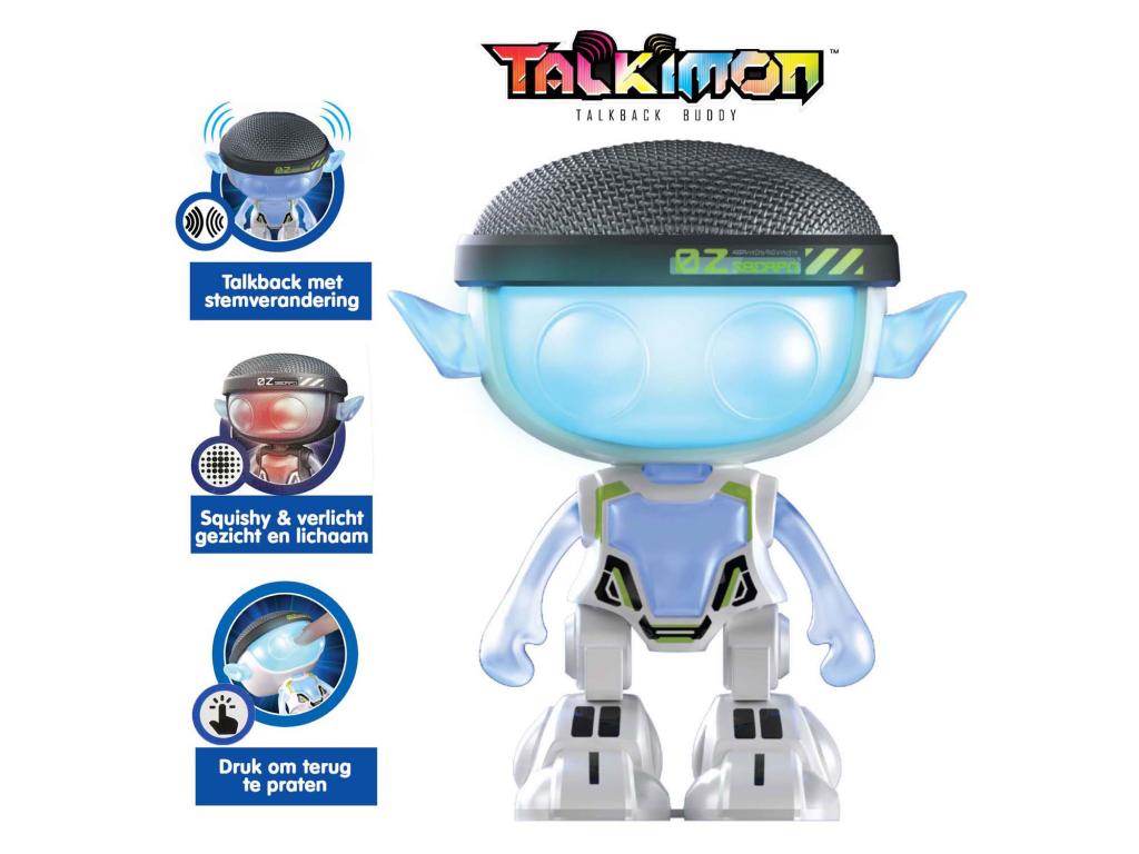 Ismerd meg Talkimont, a beszélő robot barátot, LED-es arccal, puha testtel és karokkal. Készülj fel a szórakozásra és a nevetésre Talkimon társaságában. Hallgat, beszél és különböző színekben világít! Talkimon minden arcérintéssel meglepetést okoz. Beszélj, nyomd meg, játssz! Vegyél fel szöveget, majd nyomd meg érzékelő LED-es arcát, hogy lássad, hogyan változik a fények színe, és hallgasd, hogyan változik a saját hangod szórakoztató módon! Hallgasd meg az 5 alapértelmezett hanghatást, még akkor is, ha nem vett fel semmit. Talkimon robot mindig beszélni szeretne stílusosan festeni! A robot méretei: 11 x 8 x 12 cm (H x Sz x M). Akkumulátor információk: 1 x AAA akkumulátor (a csomagban található). Korhatár: 3 év felett.