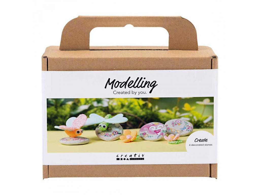 Ezzel a Creativity in a Box modellező készlettel a gyerekek elkészíthetik saját egyedi kőjüket, majd matricákkal és rovarokkal díszíthetik. A készlet tartalmazza az összes szükséges anyagot és útmutatót.