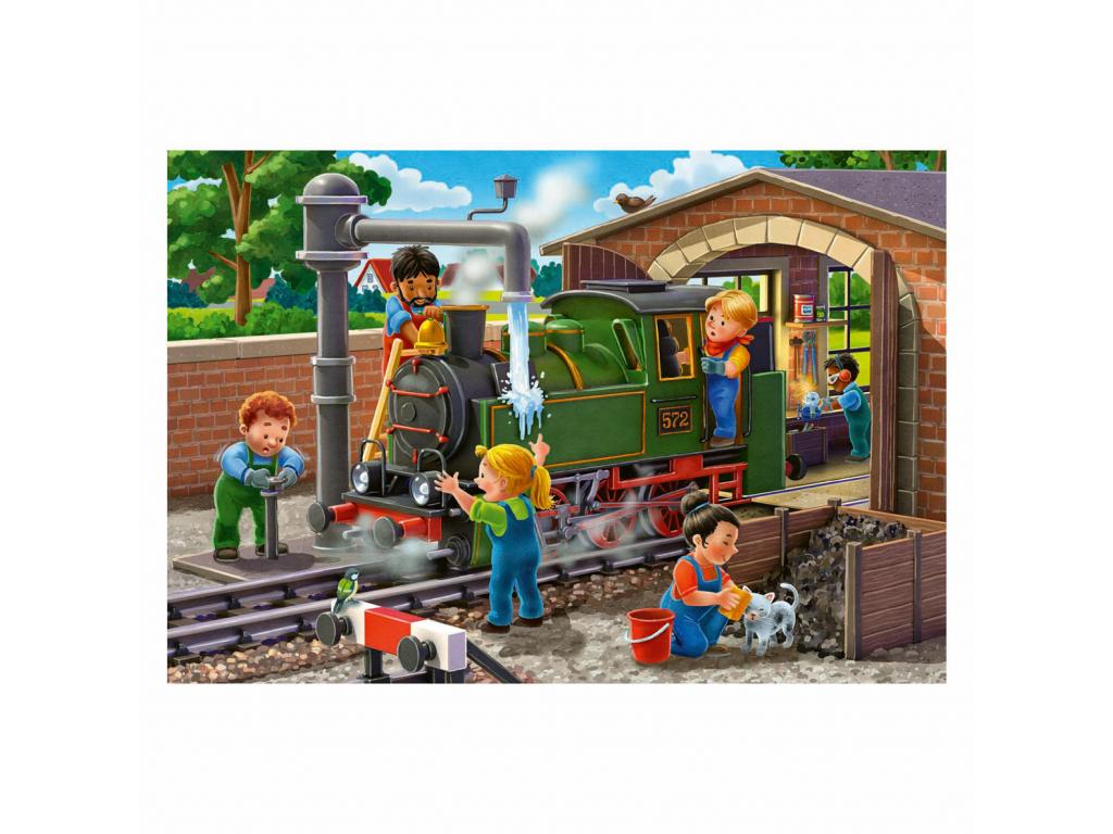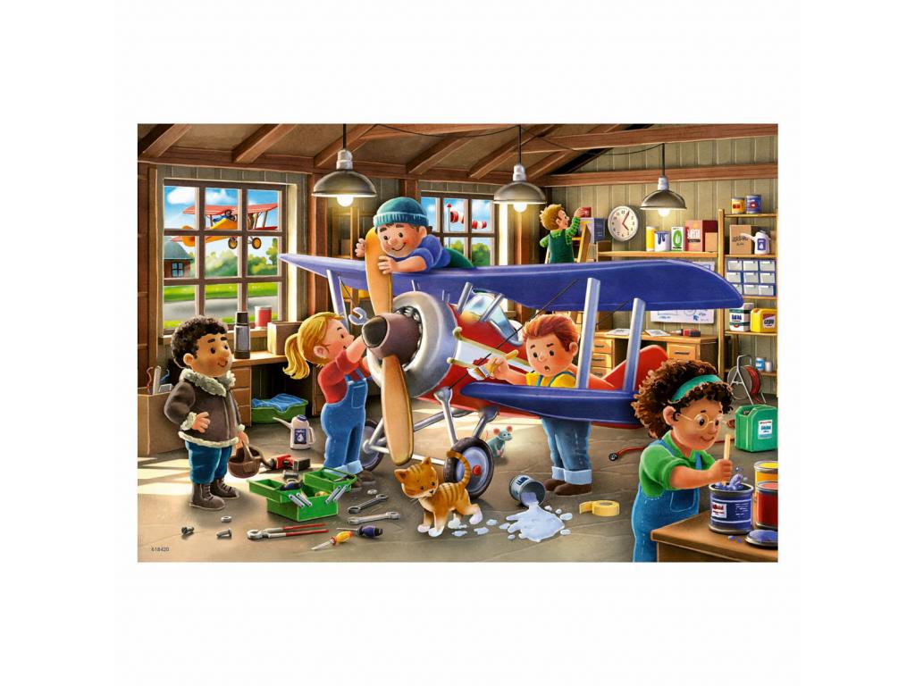 Repülőgép- és vonatjavító műhely puzzle, 2x24 darabos