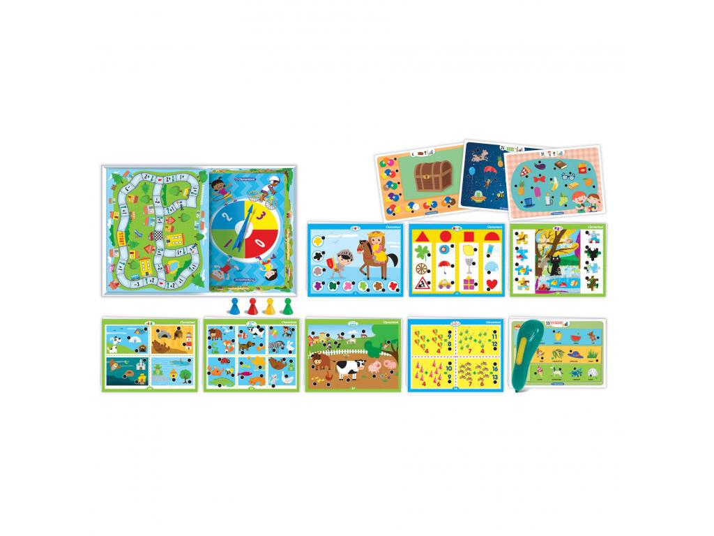 Oktató játék 32 kártyával és 64 feladattal a betűk, szavak, számok, mennyiségek, formák és színek megtanulásához. Több mint 1000 kvíz, amellyel tesztelheti magát és kihívhatja barátait a társasjátékban, így a tanulási folyamat még izgalmasabb, szórakoztatóbb és igényesebb lesz. A gyermek önállóan tanul, köszönhetően a beszélő tollnak, amely végigvezeti a játékon és elárulja a válaszokat. Holland-francia nyelvű játék!