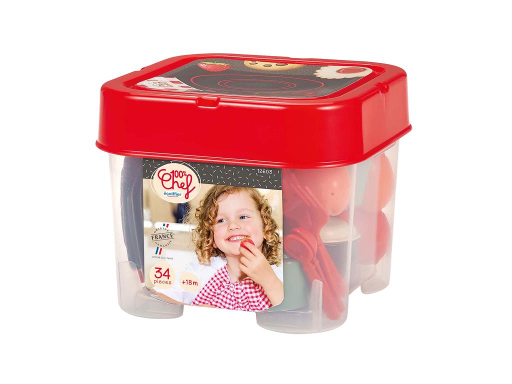 Az Ecoiffier 100% Séf: étkészlet játékételekkel, 34 darabos. leírása: