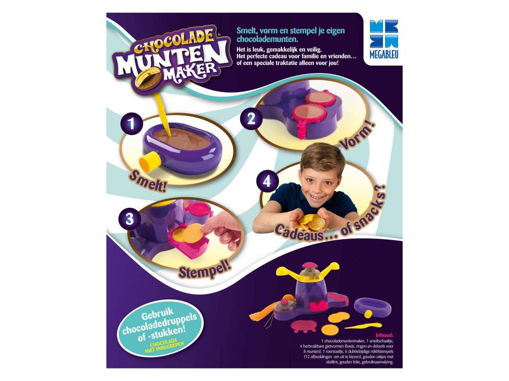 Készítsd el a saját csokoládé érméidet! Ezzel az érmékészítővel saját csokoládé érméket készíthetsz! Olvaszd meg a csokoládét az olvasztótálban, és öntsd a formába. Amint a csokoládé megszilárdult, csomagold be a pénzt egy szép aranyfóliába. Ezután válassz egy bélyegzőt, és a pénzgyártó segítségével nyomj egy bélyeget a csokoládépénzre. Így saját csokipénzt készíthetsz, és nem kell többé várni a Mikulásra!