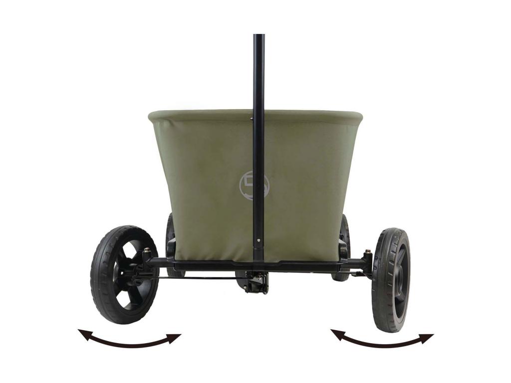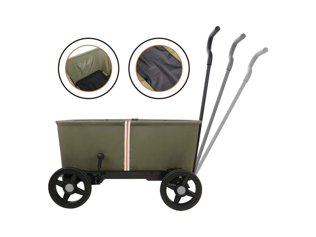 Khakiszínű kerekes kocsi forgó kerekekkel, levehető aljjal és összecsukható kialakítással. Maximális teherbírás: 50 kg. Ideális gyermekek, poggyász vagy háziállatok szállításához. Jellemzők Szín: khaki Forgatható első kerekek a könnyű manőverezésért Levehető aljzat a könnyű tisztításért Összecsukható kialakítás a helytakarékos tárolásért Alkalmas gyermekek, poggyászok vagy háziállatok szállítására Maximális teherbírás: 50 kg Teljes méretek: kb. 99,5 x 71 x 110 cm (HxSzxM) A tartály belső méretei: kb. 87 x 47,5 x 35 cm Összecsukva: kb. 89 x 72 x 33 cm (HxSzxM)