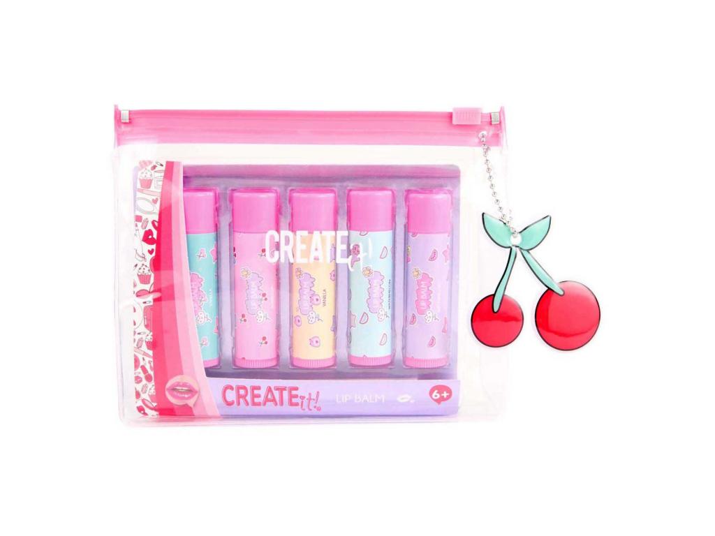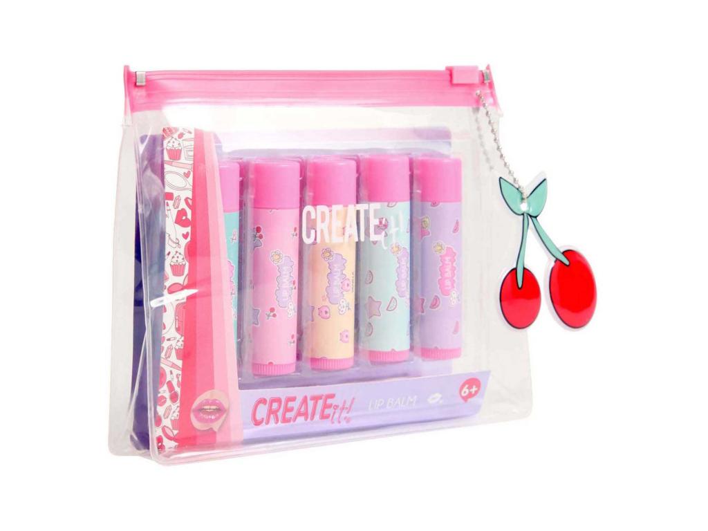 Beauty ajakápoló stift cipzáras hordtokban, 5 db ajakbalzsammal, gyümölcsös, vaníliás ízben. Create It! 6 éves kortól.