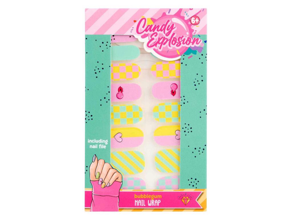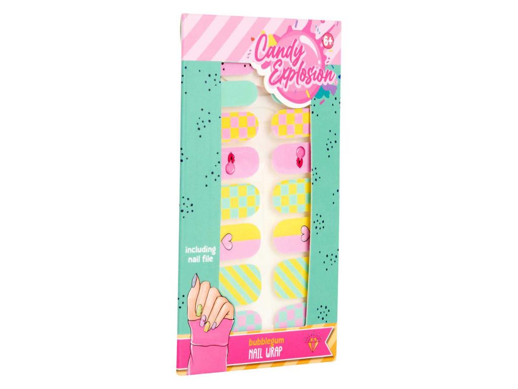 Create It! Műköröm matricák Candy Explosion, vidám gyümölcsös motívumokkal. 6 éves kortól alkalmas. Körömreszelőt tartalmaz.