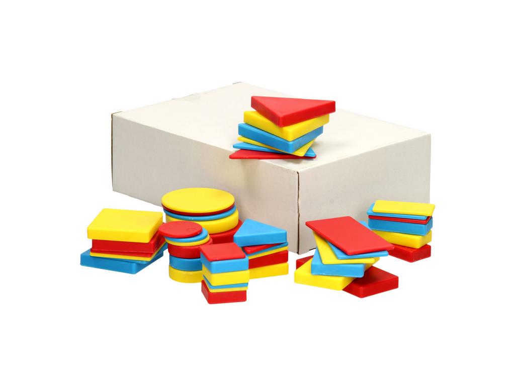 Nehéz a geometria? Ezzel a matematikai készlettel megtanulhatod a formákat és a számolást. A biztonságos, mosható műanyagból készült formák könnyen kezelhetők. A készlet 48 darabot tartalmaz három különböző színben, két különböző méretben és vastagságban. 3 éves kortól alkalmas.