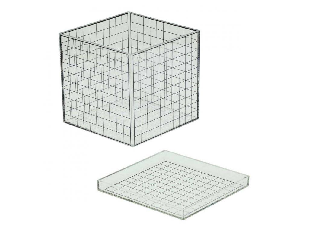 Átlátszó 3D rácsos doboz rácsos fedéllel és levehető fedéllel. Méretek kb. 10 x 10 x 10 cm. Ideális a térbeli képzelőerő, a térfogatmérés és a koordináták megértésének fejlesztéséhez. 6 éves kortól alkalmas.