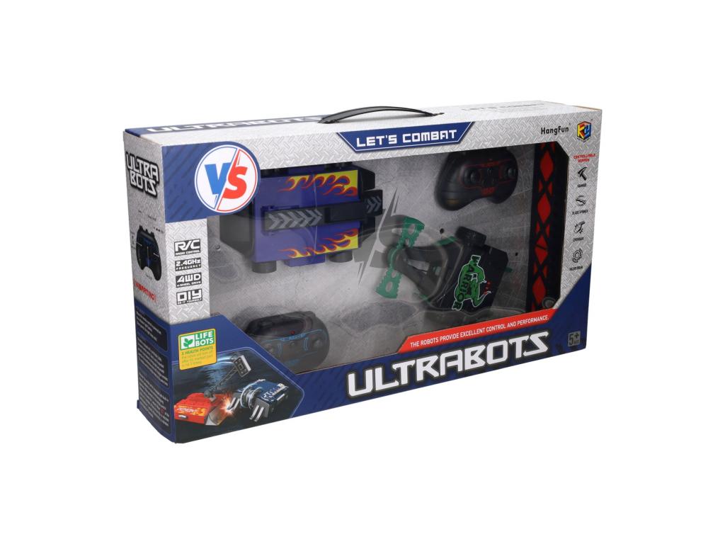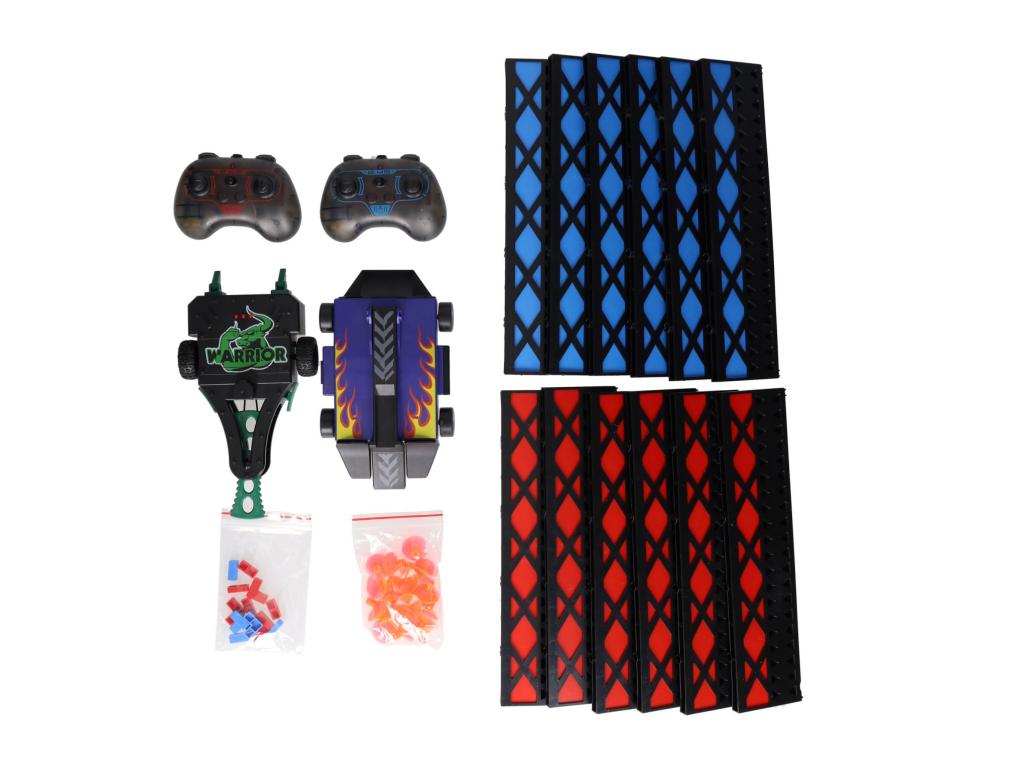 Két RC harci robotból álló szett, aréna alkatrészekkel és két távirányítóval. Műanyagból készült, 5 éves kortól alkalmas. A szett 2,4 GHz-en működik, ideális interaktív játékhoz.