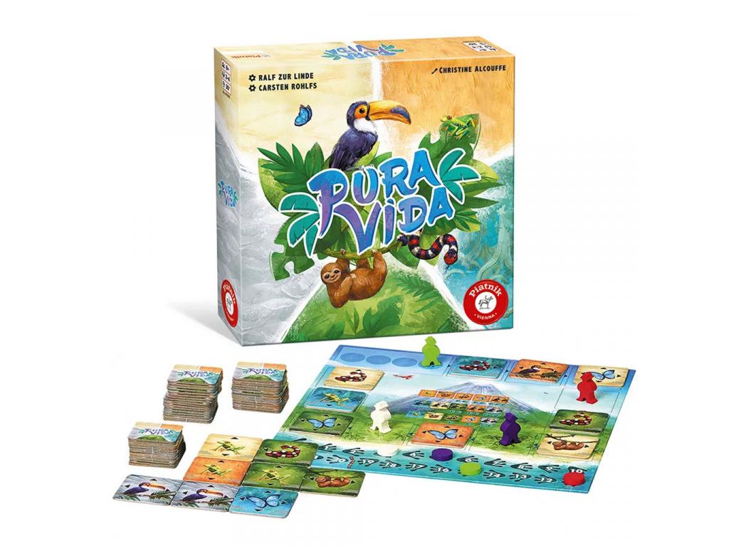 Lélegezd be a dzsungel nyugalmát, és merülj el a természet csodáiban a Pura Vida társasjátékkal! Ez a Piatnik által kiadott színes és hangulatos játék Costa Rica buja esőerdeinek hangulatát varázsolja az asztalra, ahol a játékosok célja, hogy minél gazdagabb élővilágot gyűjtsenek össze saját dzsungelterületükre. A "Pura Vida" jelentése: tiszta élet és ez a játék valóban erről szól.