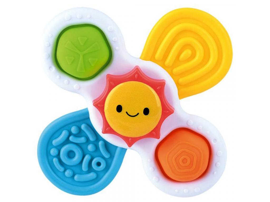 A játék közepén lévő barátságos napocska körül négy tapintásra és látványra is különböző elem helyezkedik el, amik más-más textúrával és formával lettek kialakítva. A központi részen található tapadókorong segítségével a játék könnyedén rögzíthető bármilyen sima felületre legyen az etetőszék tálcája, asztal vagy fürdőkád oldala , így biztosítva, hogy mindig a baba közelében maradjon.