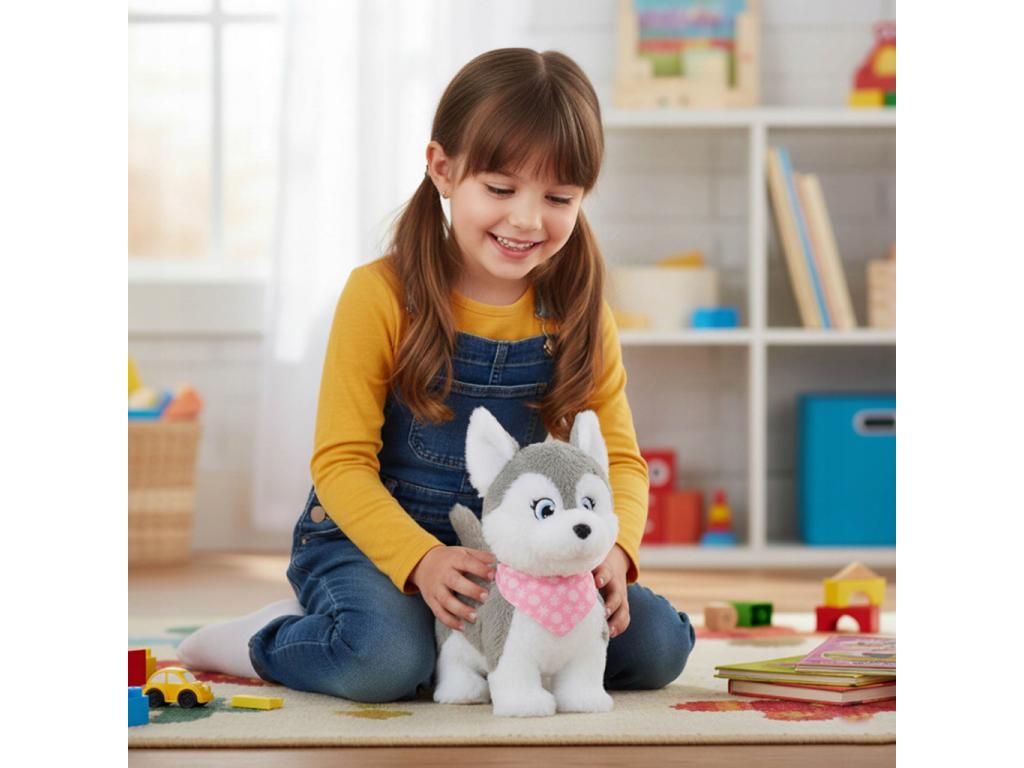 Ismerd meg Lunát, a barátságos és játékos interaktív plüss huskyt, aki garantáltan a gyereked új legjobb barátja lesz! Luna nemcsak puha és ölelni való, hanem igazi élményt nyújt a mozgásával és hangjaival pont, mint egy igazi kiskutya. Ideális választás azoknak a kicsiknek, akik még túl fiatalok egy élő kutyushoz, de már vágynak egy saját kis házikedvencre.