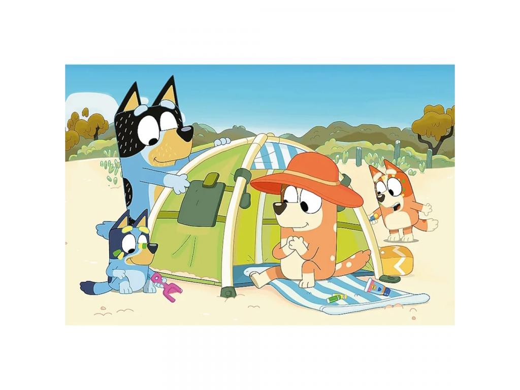 Lépjetek be Bluey vidám világába, ahol minden nap egy új kaland kezdődik! A Trefl Bluey csodálatos napja 24 darabos Maxi puzzle tökéletes választás a legkisebbek számára, hiszen nemcsak szórakoztató, de biztonságos és tanulságos játékélményt is nyújt. A képen Bluey és családja egy kellemes, napfényes tengerparti kiránduláson vesznek részt sátrat állítanak, napoznak, és nevetve töltik együtt az időt.