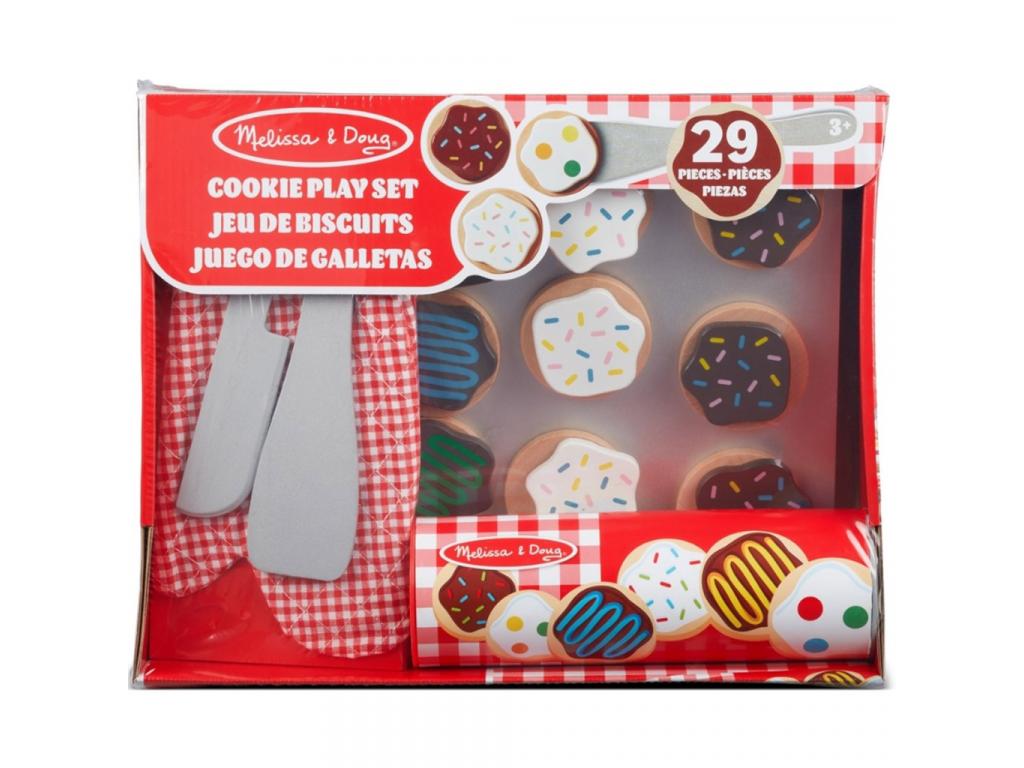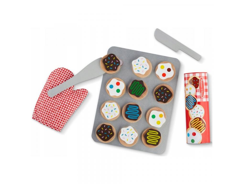 A készlet része 12 darab nyers süti, amiket mágnes segítségével lehet díszíteni különböző mázakkal és szórásokkal. A kis szakácsok tepsire tehetik a sütiket, majd a piros-fehér kockás sütőkesztyűt felhúzva kivehetik az elkészült sütiket a sütőből, végül pedig a spatulával tálalhatják őket. A játékhoz tartozik egy díszdoboz is, amelyben a süteménytészta gurigaként található, így már a süti előkészítése is életszerű élmény lehet.