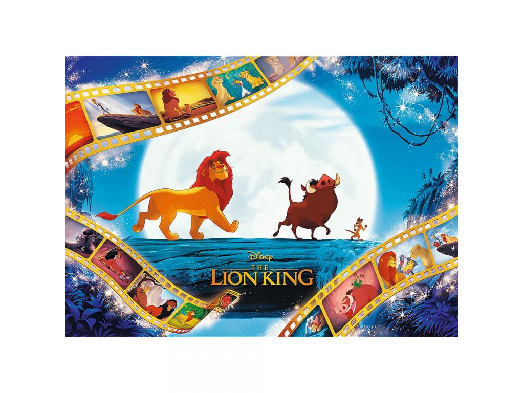 Éld át újra a Disney egyik legemlékezetesebb meséjének varázsát az Az Oroszlánkirály Ikonikus Disney pillanatok című 1000 darabos puzzle segítségével! Ez a különleges kirakó a legendás The Lion King meséből idéz meg örökérvényű jeleneteket, középpontban Simbával, Timonnal és Pumbaával, amint boldogan vonulnak a holdfényben a jól ismert Hakuna Matata életérzés szinte árad a képből. A film kockái szalagszerűen keretezik a képet, felelevenítve a meséből jól ismert érzelmes és humoros pillanatokat.