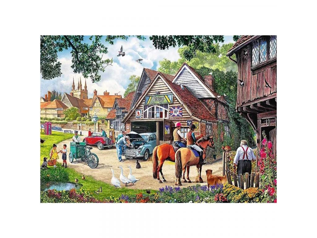 A doboz két különböző, mégis harmonikusan egymáshoz illő jelenetet rejt. Az első egy élénk falu központját mutatja be, ahol az emberek lóháton érkeznek a klasszikus garázshoz, miközben a háttérben brit zászlók, régi autók és karakteres épületek idézik meg az 1950-es évek hangulatát. A második jelenet egy nyugodt, napfényes piknikezést ábrázol egy kis folyó partján, ahol gyerekek játszanak a vízben, felnőttek beszélgetnek a fűben, és a háttérben békésen terül el a falu.