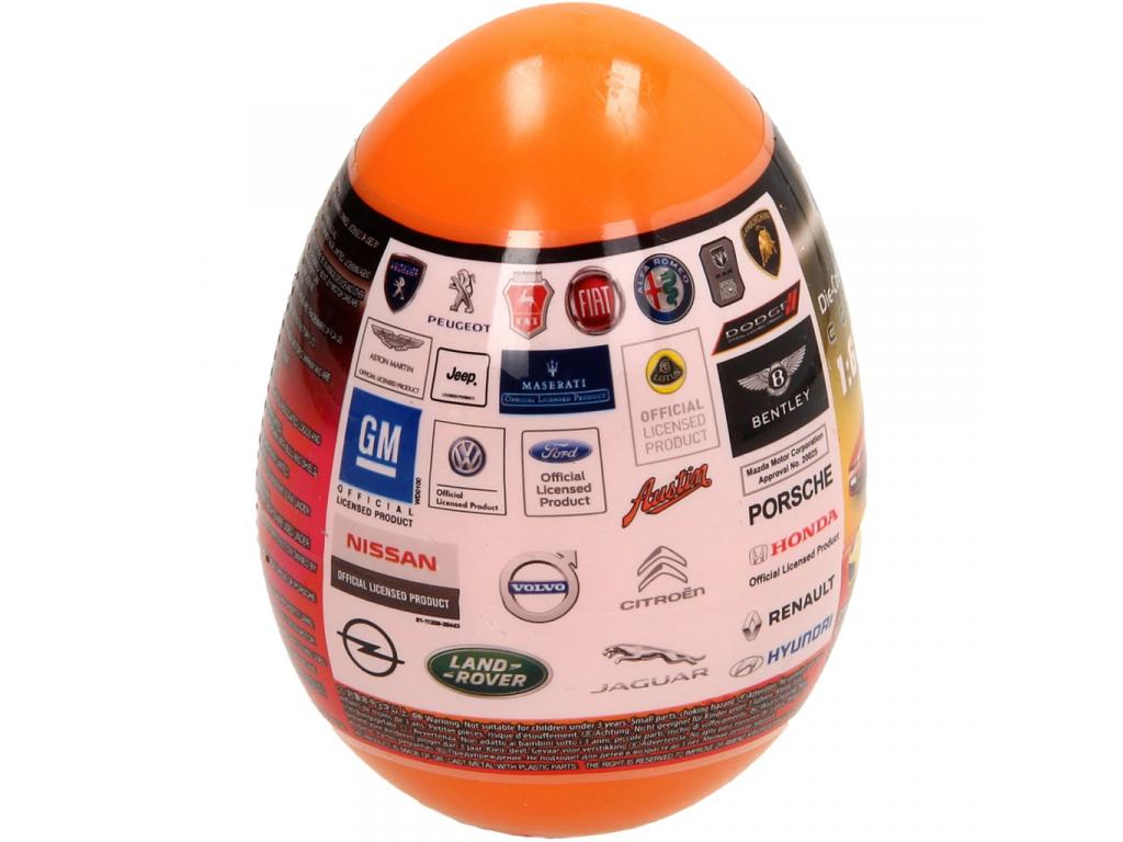 1/60 méretarányú fém kisautó egy színes műanyag tojásban