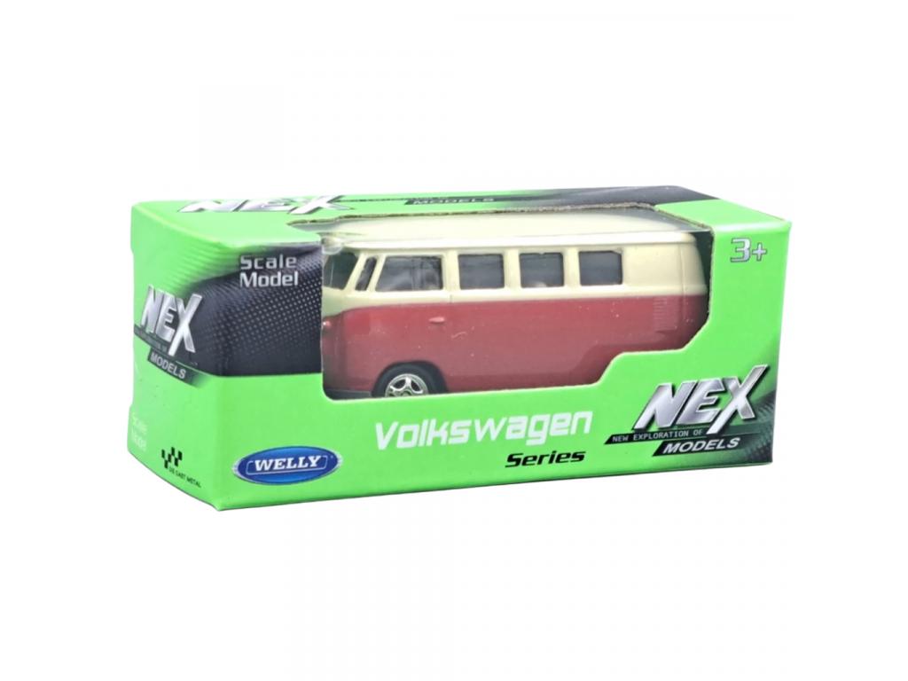 A Welly: Volkswagen T1 piros fém kisautó modell 1/64 leírása: