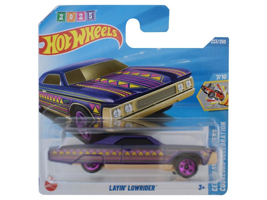A Hot Wheels Layin' Lowrider egy igazi stílusikon a kisautók világában, amely a klasszikus amerikai lowrider kultúrát hozza el a gyerekeknek és a gyűjtőknek egyaránt. Ez a 2025-ös Celebration sorozat (7/10) darabja különleges, lila karosszériával és vibráló, geometrikus mintákkal borított dizájnnal hódít, amely azonnal kitűnik bármelyik gyűjteményből. Az aranyszínű lökhárítók és a feltűnő, rózsaszín kerekek még egyedibbé teszik ezt a látványos modellt.