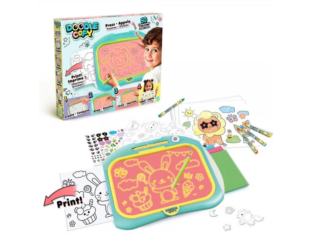 Keltsd életre a gyermeked fantáziavilágát a Doodle Copy rajztáblával, ami nemcsak egyszerű rajzeszköz, hanem egy teljes alkotóműhely kicsiknek! Ez a zseniálisan megtervezett készlet 50 különféle sablont tartalmaz, amikkel a gyerekek könnyedén tudnak rajzolni, majd a kész alkotásokat egy gombnyomással átmásolni papírra, amit aztán ki is színezhetnek. A Doodle Copy ideális eszköz ahhoz, hogy gyermeked játékosan fejlessze a kézügyességét, a kreativitását és a finommotorikáját miközben órákon át leköti a figyelmét.