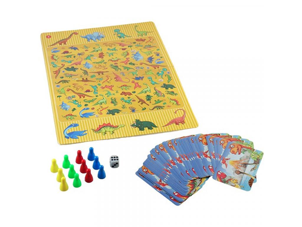 A dobozban található két különböző játéklehetőség egyike egy memóriaalapú kártyajáték, ahol a cél az, hogy a játékosok minél gyorsabban megtalálják az egyező dinoszauruszokat és gyűjtsenek minél több kártyát. A másik játék pedig egy izgalmas, dobókockás verseny, amely során a gyerekek egy színes játéktáblán haladnak lépésről lépésre és természetesen dínókkal teli világban kalandoznak!