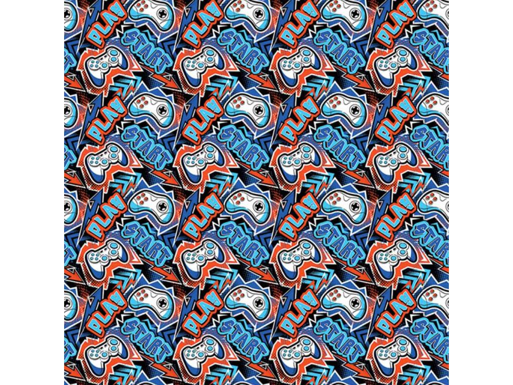Indulhat a játék! A Gamer Kontroller mintás csomagolópapír igazi telitalálat minden videojáték-rajongó számára legyen szó kisfiúról, kamaszról vagy akár egy felnőtt gamer barátról. A 100x70 cm-es íven vagány, dinamikus dizájn jelenik meg: kontroller ikonok, START és PLAY feliratok, élénk piros, kék és fekete színekben, képregényszerű stílusban.