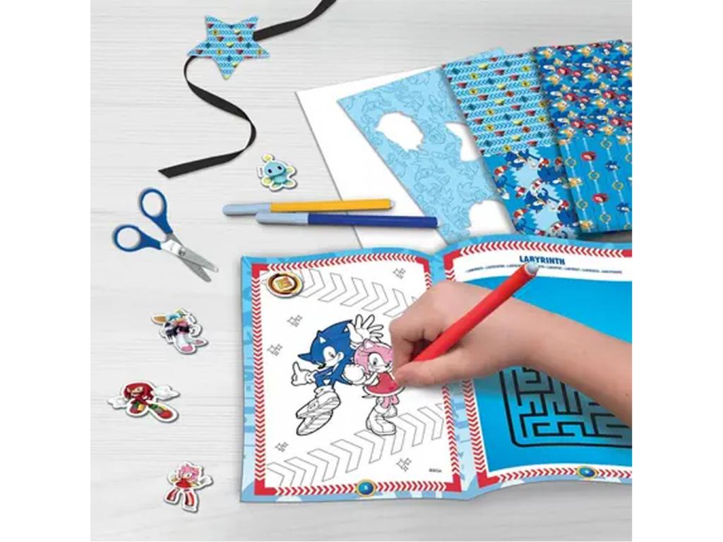 A kreatív szett célja, hogy ösztönözze az önálló alkotást, miközben kedvenc karaktereik, például Sonic, Tails, Knuckles és Amy kísérik őket minden egyes oldalon. Az ergonomikus táska könnyen zárható és hordozható, így bárhová magatokkal vihetitek akár a nagyihoz, nyaralásra vagy csak egy nyugodt délutánra a parkba.