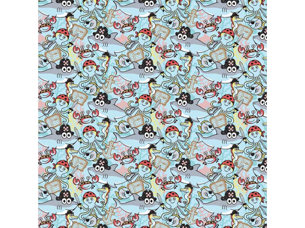 Lepd meg a legkisebbeket egy igazi tengeri kaland hangulatát idéző csomagolással! A Kalózos Tengeri Kaland csomagolópapír 100x70 cm-es méretben tökéletes választás gyerekajándékokhoz, hiszen minden négyzetcentimétere tele van izgalmas részletekkel: mosolygós polipok karddal és kalózsapkával, szemfedős cápák, kis rákok, horgonyok, tengeri kígyók, kincsesládák és még sok más vidám tengeri figura táncol a világoskék háttéren.