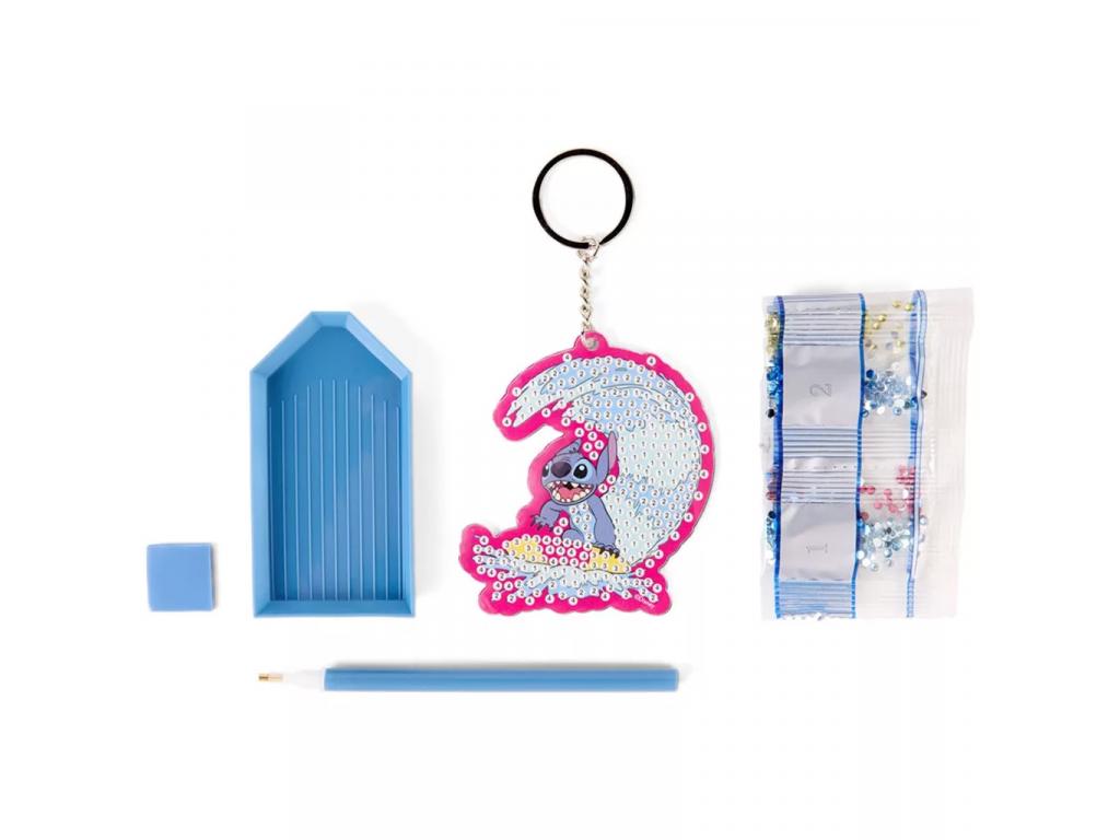 Ha a gyermeked odavan a Stitch karakteréért és szívesen kézműveskedik, akkor a Stitch gyémántfestés kulcstartó tökéletes választás lesz számára! Ez a kreatív szett nemcsak egy aranyos, vidám kulcstartót tartalmaz, hanem több mint 200 darab csillogó gyémántot is, amelyekkel életre kelthetitek a hullámok hátán szörföző Stitch figuráját.