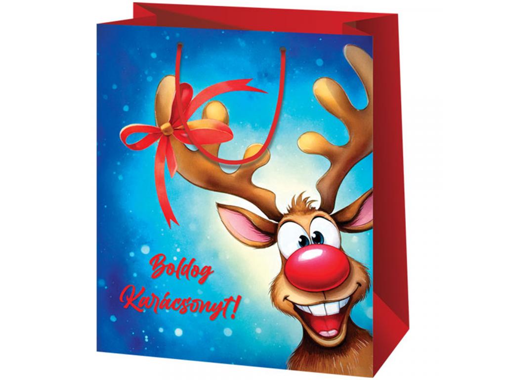 Cardex: Piros orrú rénszarvas nagy méretű ajándéktáska 26x13x33cm