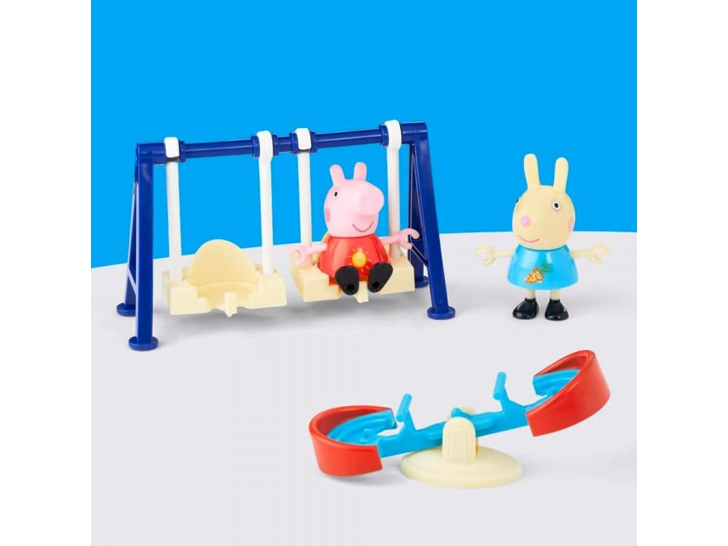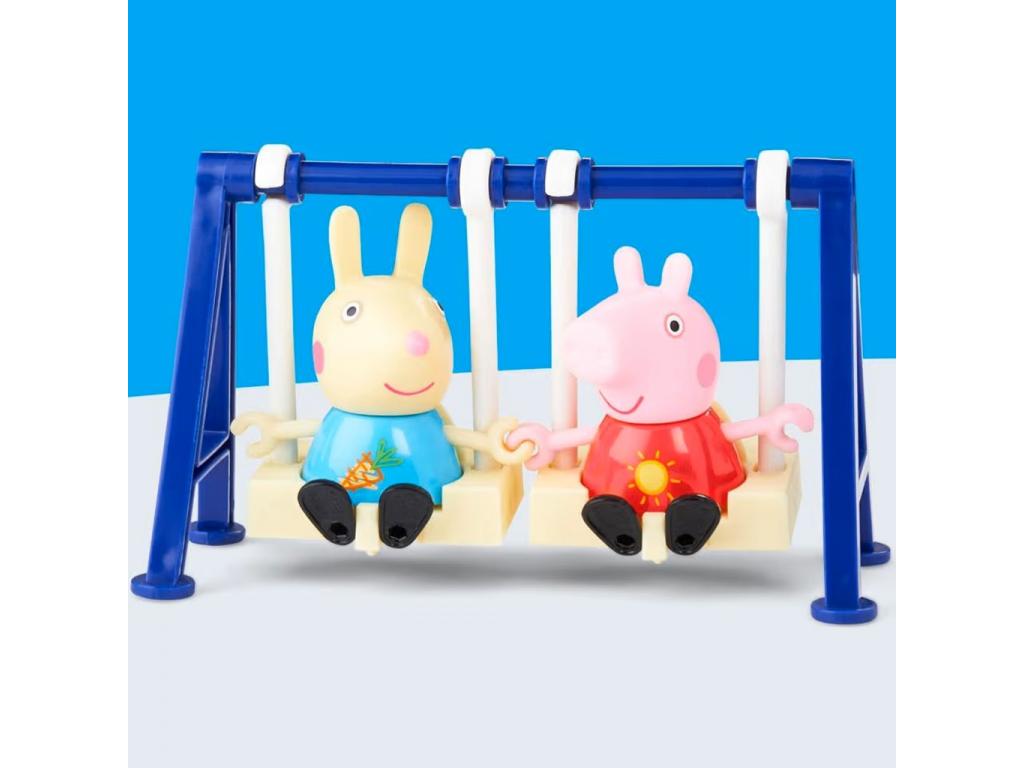 A Peppa Malac: Peppa élményei kültéri móka játékszettel gyermeked újraélheti a kedvenc rajzfilmsorozat vidám jeleneteit vagy saját, kreatív történeteket találhat ki. A készlet két kedvelt szereplőt tartalmaz Peppa Malacot és Rebecca Nyuszit tematikus, színes ruhában, valamint egy hintát és egy libikókát, hogy a szabadtéri móka teljes legyen.
