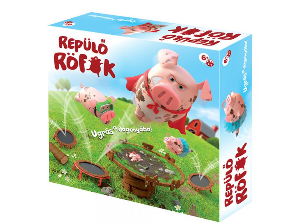 A Repülő Röfik társasjáték egy elképesztően vicces és mozgalmas játék, ami az egész családot megnevetteti! Ebben a pörgős ügyességi játékban a feladat egyszerű, mégis kihívásokkal teli: segítenetek kell a mókás röfiknek, hogy a trambulinról elrugaszkodva pontosan a dagonyába pottyanjanak! Kicsiknek és nagyoknak egyaránt szórakoztató, ahol a célzás, időzítés és egy kis szerencse a siker kulcsa.