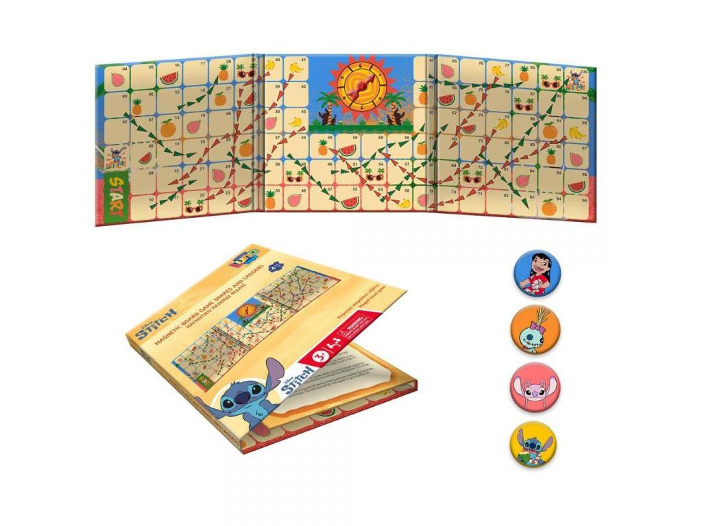 A Luna: Mágneses összecsukható Kígyók és létrák társasjáték Disney Stitch szereplőkkel leírása: