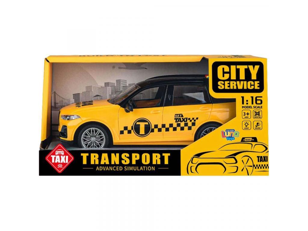 Ez a városi taxi tökéletes választás minden kis autórajongónak, aki imádja a valósághű játékokat! A 1:16 méretarányú modell részletes kidolgozása és modern megjelenése igazán látványossá teszi, miközben a fény- és hangeffektek még izgalmasabbá varázsolják a játékot. Csak nyomd meg a gombot, és máris felvillannak a lámpák, megszólal a duda vagy a motorhang pont, mint az igazi taxiknál! A sárga-fekete színű jármű lendkerekes meghajtással működik, így könnyedén suhan előre, ha meglököd.