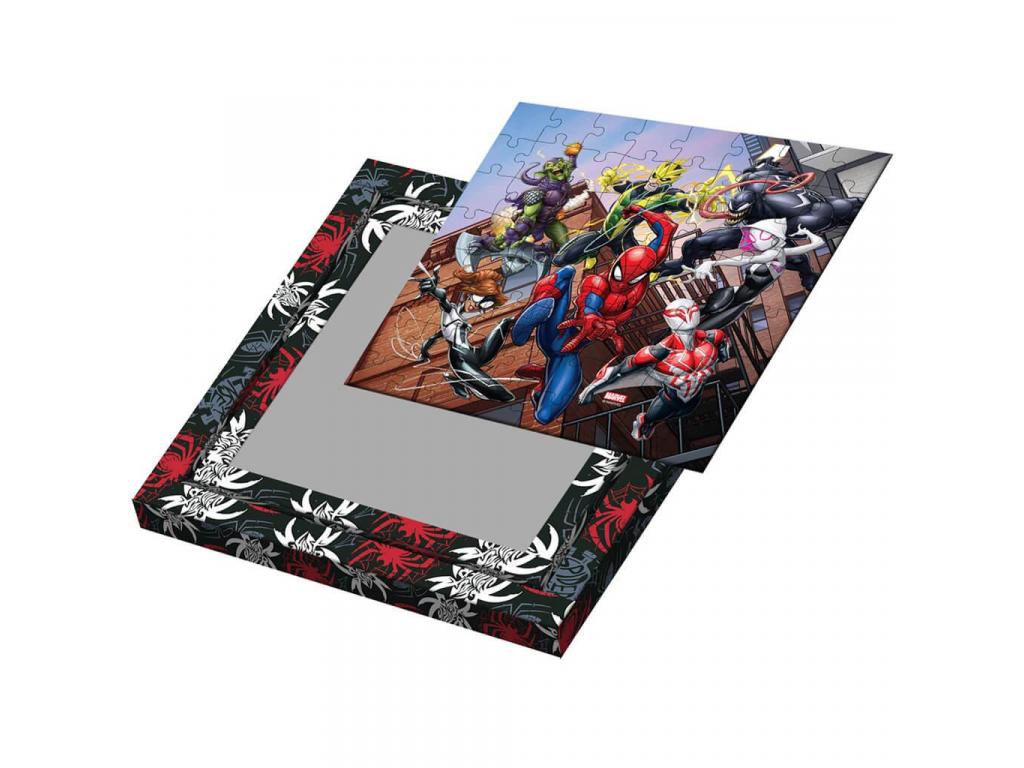 A puzzle középső része egy látványos jelenetet ábrázol Pókemberrel, Spider-Gwennel, Venommal, Zöld Manóval és más népszerű karakterekkel. A külső keret fekete-fehér mintázata pedig csak arra vár, hogy színes ceruzákkal vagy filcekkel a gyerekek saját stílusukban dekorálják. A kirakó 27 x 27 cm-es méretének köszönhetően ideális otthoni játékhoz, és a nagyobb daraboknak köszönhetően már 4 éves kortól is könnyen kezelhető.