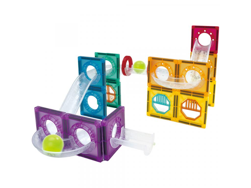 45 darabos mágneses építőkészlet golyópálya elemekkel