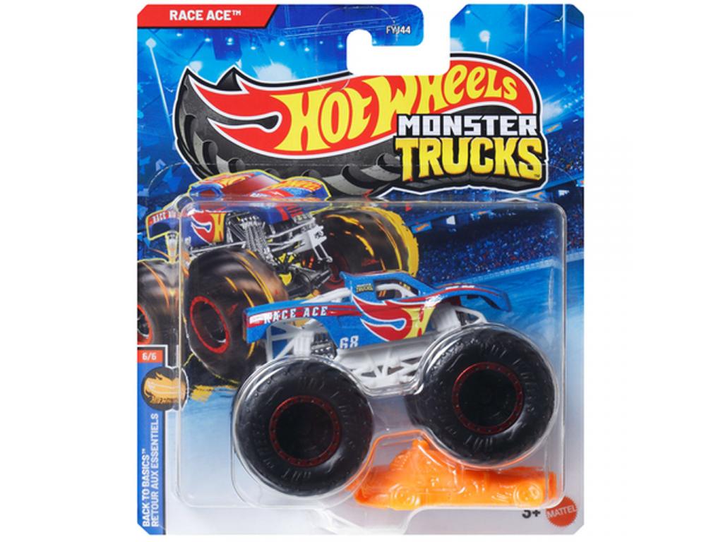 A Race Ace az igazi bajnokok választása! Ez a Hot Wheels monster truck a sebesség, az erő és a versenyszellem tökéletes egyesülése. A színvilága piros, kék és fehér olyan, mint egy lobogó zászló, amely győzelmet hirdet. Az oldalán látható nagy 68 és a Hot Wheels lánglogó még erőteljesebbé teszi a megjelenését.