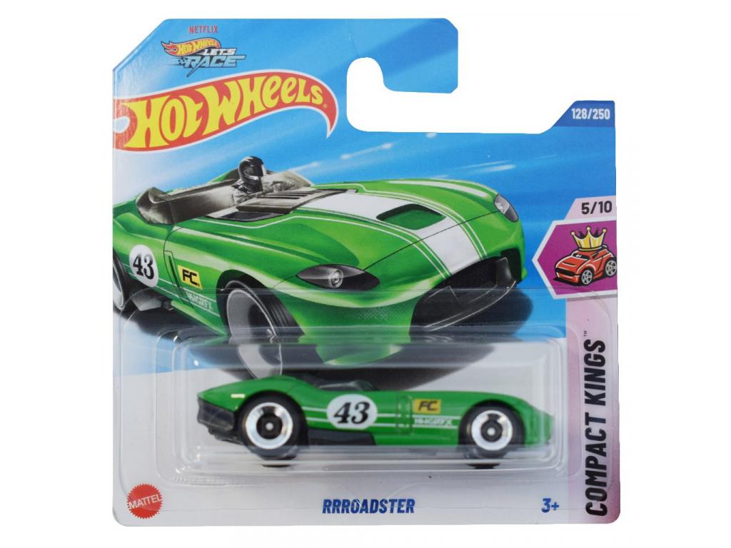 A Hot Wheels RRRoadster kisautó egy ultramodern, nyitott tetejű versenyautó, amely zöld fényezésével és fehér csíkozásával hívja fel magára a figyelmet. Az autó aerodinamikai kialakítása és részletgazdag kidolgozása garantáltan minden autórajongó kedvence lesz. Az autó kompakt, mégis rendkívül sportos megjelenése egyedi karaktert ad neki.