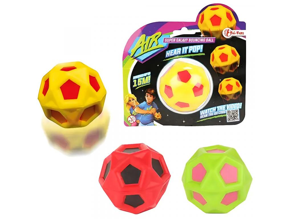 Készülj fel egy szuper pattogós kalandra a Toi-Toys Air Super Galaxy labdával! Ez a különleges kialakítású, színes pattogó labda nemcsak elképesztően magasra akár 15 méterre is képes felpattanni, hanem minden ütésnél egy vicces pop hangot is ad, amitől még szórakoztatóbb lesz a játék. Ideális választás a mozgásos játékokhoz és kültéri elfoglaltsághoz.