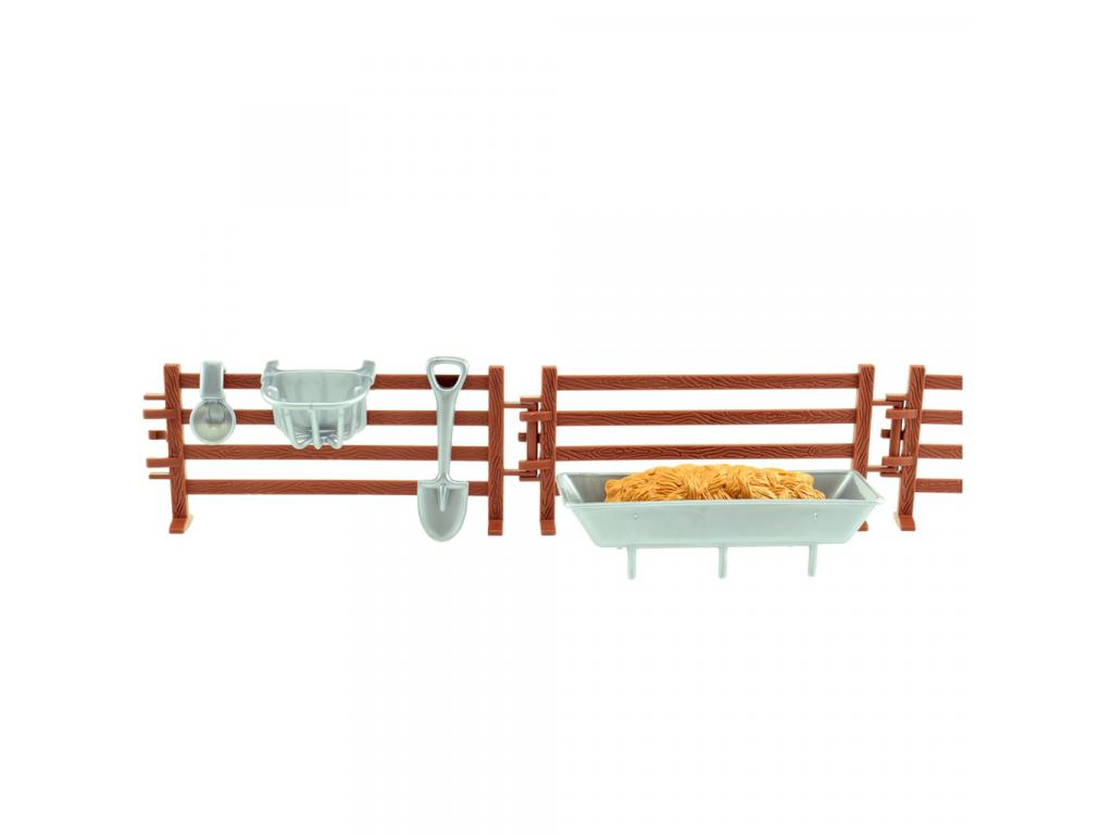 A ló és a lovas kiváló minőségű műanyagból készült, élethű részletekkel, mint például a kantár, nyeregtartó vagy a lovas ruházata. A kiegészítők például etetővályú, széna, lapát, vödör és karámkerítés lehetővé teszik, hogy a gyerekek teljes körűen elláthassák kedvenc négylábújukat. A szett fejleszti a kézügyességet, a kreativitást és a gondoskodó attitűdöt, miközben a gyerekek elmerülhetnek a farmélet világában.