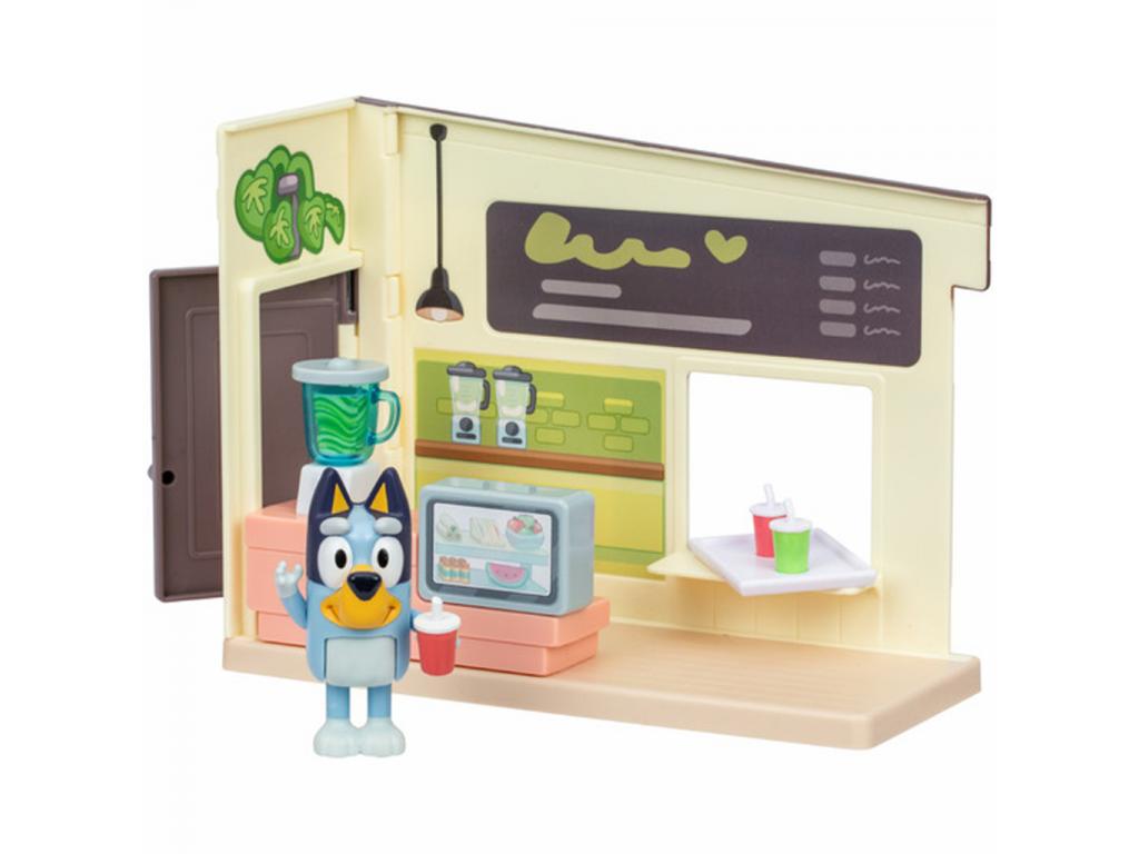 A szett középpontjában egy mini juice bár áll, tele aranyos részletekkel: pult, turmixgép, hűtőpult, menütábla és természetesen a finom italok sem hiányozhatnak! A gyerekek segíthetnek Blueynak elkészíteni a frissítő gyümölcsleveket, felszolgálni a vendégeknek vagy épp új recepteket kitalálni a lehetőségeknek csak a fantázia szab határt.