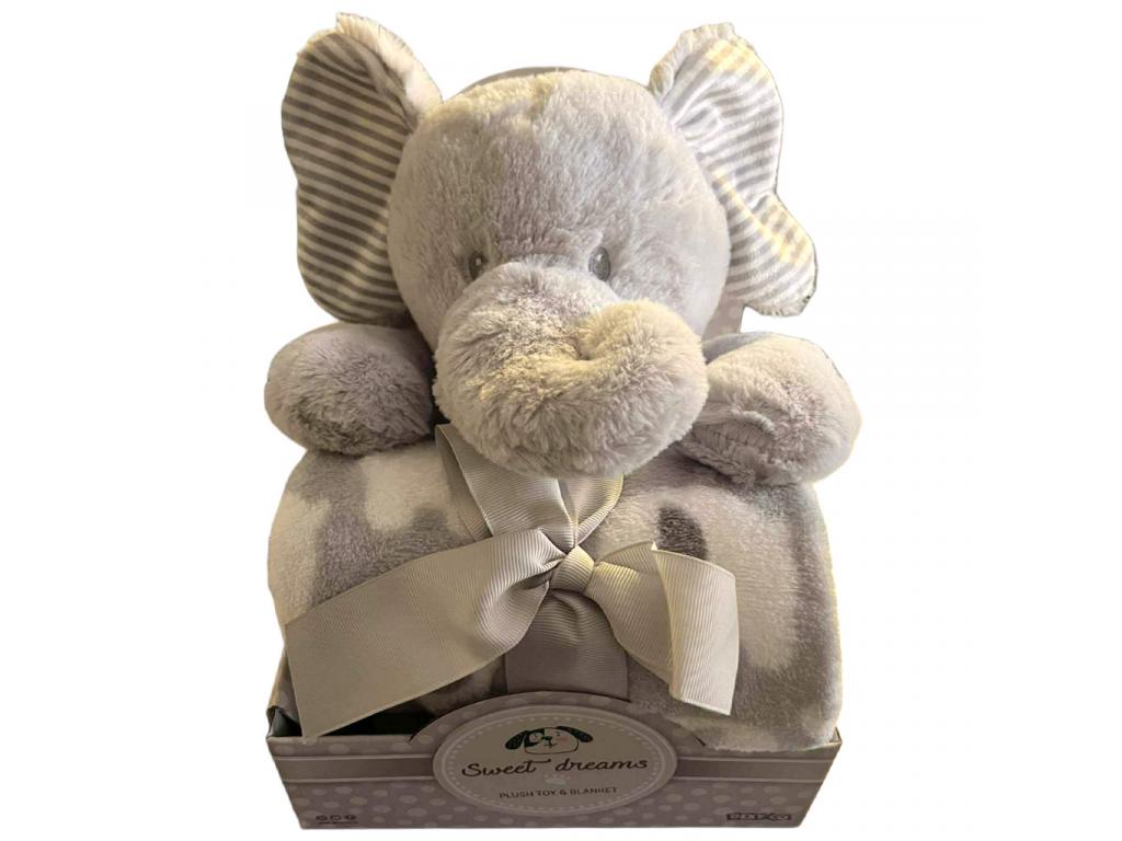 SweetDreams: Takaró és plüss elefánt szürke színben