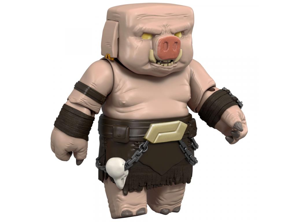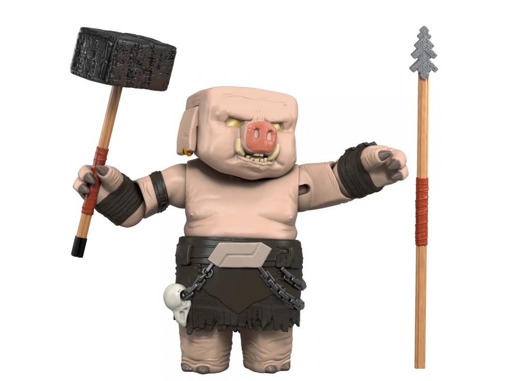 A kb. 10 cm magas Piglin harcos masszív, izmos testalkattal és fenyegető arckifejezéssel érkezik, és nem hiányozhat mellőle két erőteljes fegyvere sem: egy óriási kalapács és egy dárda. A figura bőrszíne, agyara, szegecselt öve és koponyás láncos kiegészítője mind hozzájárulnak a karakter lenyűgöző részleteihez, amelyeket a film inspirált.