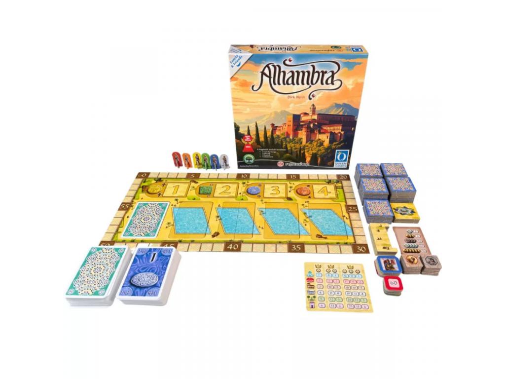 Lépjetek vissza az időben a középkori Spanyolországba, és építsetek lenyűgöző palotákat az Alhambra falai között! Az Alhambra társasjáték egy többszörösen díjnyertes, stratégiai építkezős játék, amelyben 26 játékos vetélkedhet azért, hogy ki tudja a legcsodálatosabb palotát felépíteni Granadában. A játék világszerte óriási sikert aratott, és 2003-ban elnyerte a rangos Spiel des Jahres (Év játéka) díjat nem véletlenül!