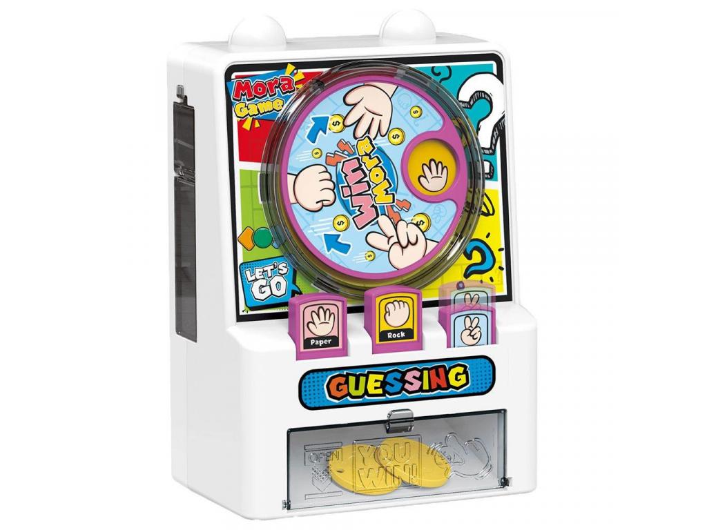Ismerd meg a klasszikus Kő-Papír-Olló játék teljesen új, szórakoztató változatát a Luna Toys Mora játékautomatájával! Ez a színes, pénzbedobós mini gép valódi játékgépes élményt kínál a gyerekeknek csak dobd be a játékérmét, válaszd ki a lépésedet (kő, papír vagy olló), és figyeld, vajon ki nyer!