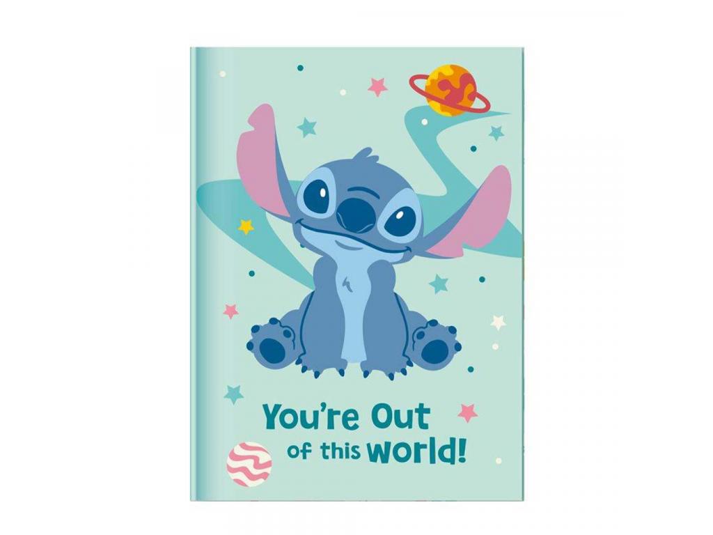 A napló borítóján Stitch mosolyog vissza rá egy űrtematikus háttérrel, a felirat pedig bátorít: Youre out of this world! azaz Te nem ebből a világból való vagy!, ami különlegesnek és egyedinek érezteti a kis tulajdonosát. A 60 oldalas belső rész elegendő helyet biztosít a napi gondolatok leírására, történetek kitalálására vagy akár rajzolásra is. A napló lakattal zárható, így minden bejegyzés biztonságban marad legyen szó titkokról, baráti élményekről vagy álmodozásról.